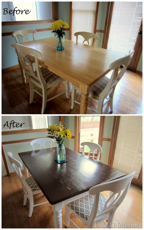 10. Hi: I need help deciding what to do about my table. I have one similar to yours with a dark wood top and the bottom is dark green. The chairs are dark green and we have just redone the cushions. All of the wood in our house and surrounding rooms are dark brown walnut so I can't go with white. Did you sand down that table in order to paint it as it looks shiny like mine. I would love to send you photos of mine if you'd care to help me decide. My email is judynieman@aol.com not the address above.